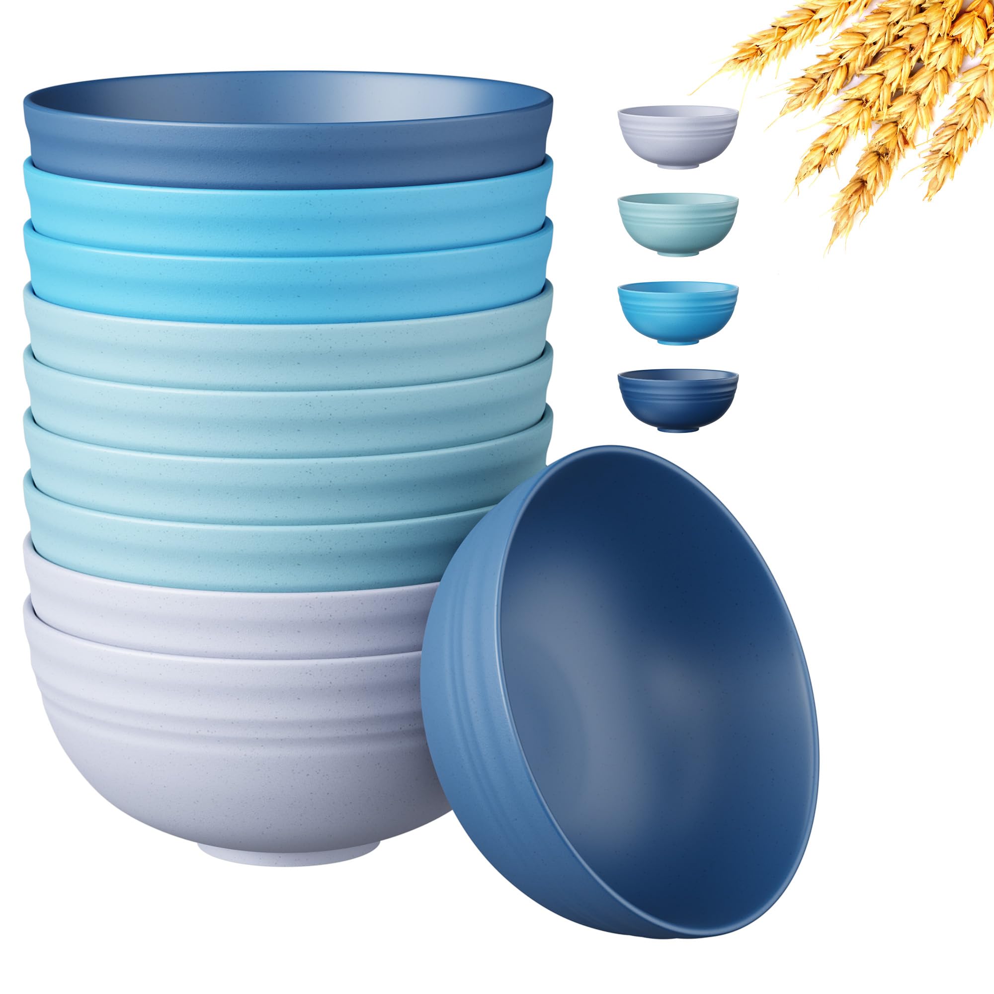 Quatish 10 PCS Unbreakable Cereal Bowls,Dishwasher & Microwave Safe Wheat Straw Bowls, Easy-to-Clean Lightweight Desserts & Soup Bowl, Portable for Picnics ,Snack Plastic Bowls Set,Blue