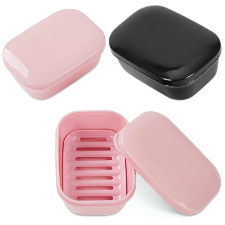 Quatish Leakproof Soap Holder 3 Pack, Pink and Black, Travel Soap Container with Lid, Travel Size Toiletries, Portable Bar Soap Holder