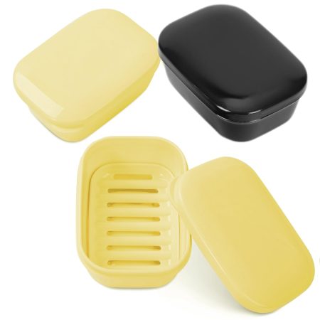 Quatish Leakproof Soap Holder 3 Pack, Yellow and Black, Travel Soap Container with Lid, Travel Size Toiletries, Portable Bar Soap Holder