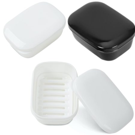 Quatish Leakproof Soap Holder 3 Pack, White and Black, Travel Soap Container with Lid, Travel Size Toiletries, Portable Bar Soap Holder