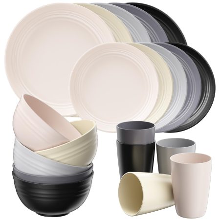 Quatish 24 Piece Plates and Bowls Sets for 6, Unbreakable Dinnerware Sets, Plastic Dish Set for Camping, Dishwasher Microwave Safe, Outdoor Kitchen and Apartment Dinning RV Essentials