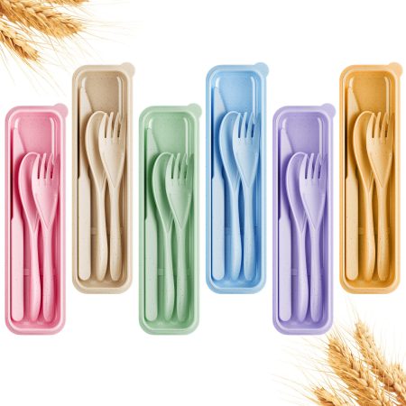 Quatish Reusable Travel Utensils with Case,4 Sets of Camping Utensils,Portable Wheat Straw Utensil (Knife, Fork, Spoon) for Lunch Box,Kitchen, Travel, Picnic & Daily Use - Easy to Clean (Multi-Color)