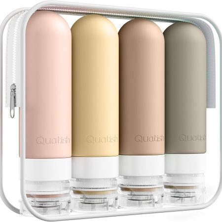 Quatish Travel Bottles for Toiletries, Original Patented Leak Proof Travel Size Containers, 3 oz Tsa Approved Silicone Shampoo and Conditioner Bottles, 4 Pack